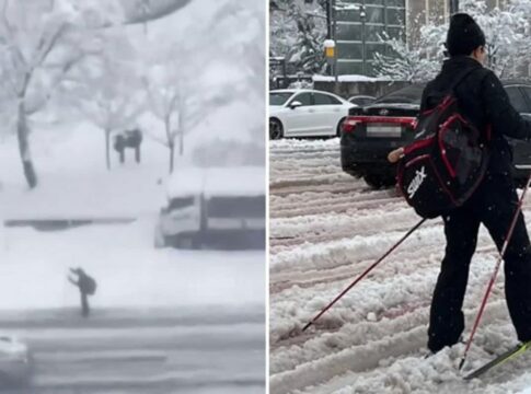 記録的大雪で12km先の職場までスキーに乗って出勤した会社員、その正体が明らかに