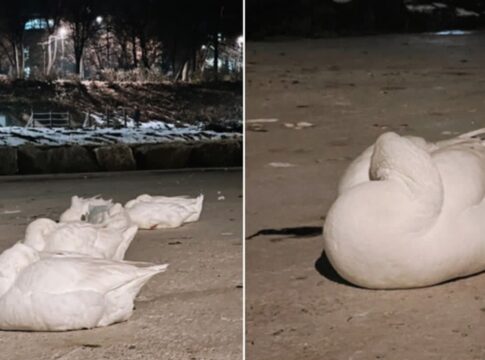 大雪の中で見つけた生きたアヒルが、雪アヒルに見えるという驚きの体験が話題に。