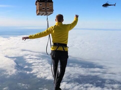 「東京スカイツリー4個分の高さ」上空2,500mで綱渡りをし、見てるこっちがハラハラ!
