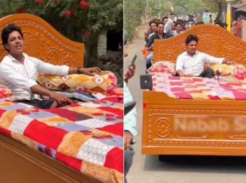 男性がベッドを自動車に改造し、道路を走行する姿が話題に。安全性は確認されず、警察に停止命令。