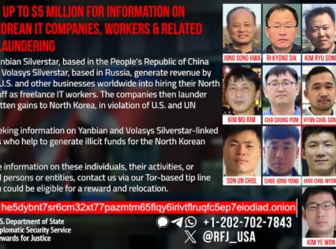 米国、北朝鮮のIT企業による不正な収益活動に関与した幹部や従業員を公表!500万ドルの懸賞金をかけて情報提供求める