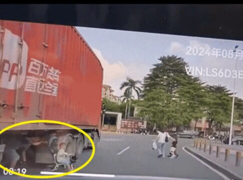 【中国】ベビーカーを押しながら貨物トラックの下を通り抜け、無断横断した男性に批判殺到
