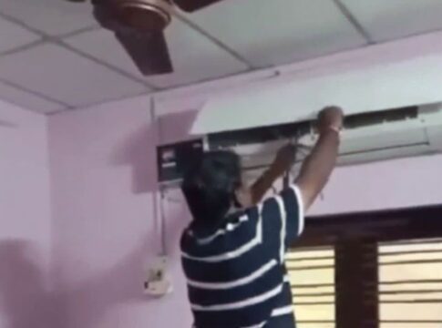 インドでエアコンからヘビが発見され、驚いた男性が駆除専門家に助けを求める事件が報じられた。