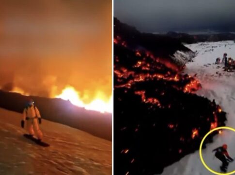 溶岩のそばでスキー?エトナ山の観光客が危険なスリルを求めて集結