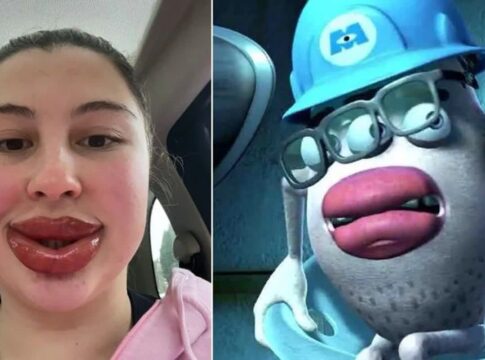 「あれ、なんか違う…」唇タトゥーでパンパンに…モンスターズ・インクのキャラそっくり