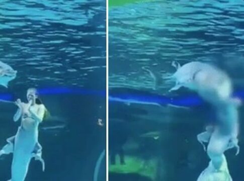 中国の水族館で人魚衣装のパフォーマーがチョウザメに襲われる事故が発生、幸い怪我はなし。