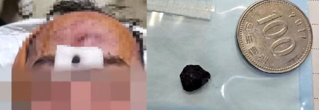 男性が手術後に額にアスファルトの破片が残っていたことが判明し、病院の対応に怒りを示した。