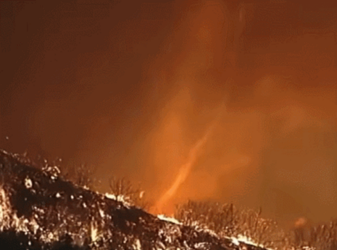 ロサンゼルス周辺を襲った山火事で発生した稀な現象「ファイアネード」、竜巻並みの破壊力を持ち被害拡大の懸念