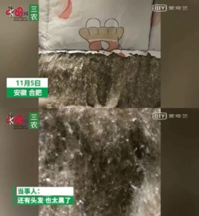 中国で購入した綿布団からカビの塊が出現し、女性が困惑する様子が話題に。
