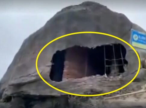 「偽物大国」中国の有名な山の頂に佇む名物の岩、ある日大きな穴が開いていた?