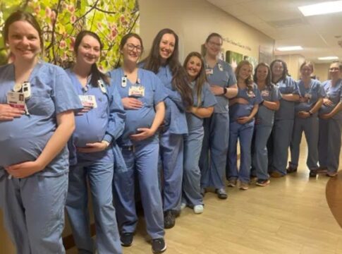 米国の病院で14人の看護師が同時に妊娠中で、母親になる経験が専門性を深めると注目されている。