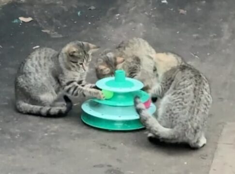 野良の子猫たちが初めてのおもちゃで遊ぶ様子が心を温め、多くの人々の感動を呼んでいる。