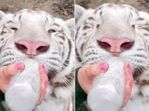 白虎が哺乳瓶からミルクを夢中で飲む姿が話題に。猛獣の意外な愛らしさに多くの人が癒された。