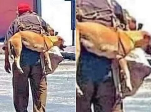 「アスファルトが熱すぎて危ないから」炎天下で犬を背負って歩くおじいさんの愛情が深すぎる