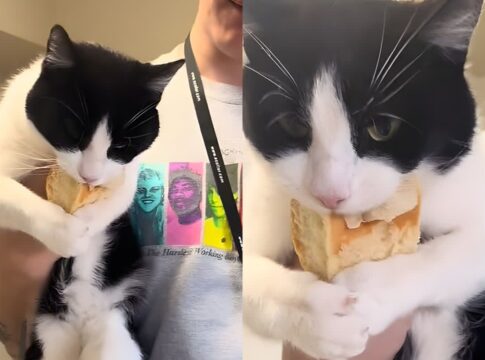 パンを盗んだ猫コービンが逆ギレ、家族と奪い合い。健康に悪影響の炭水化物を求める姿が話題に。