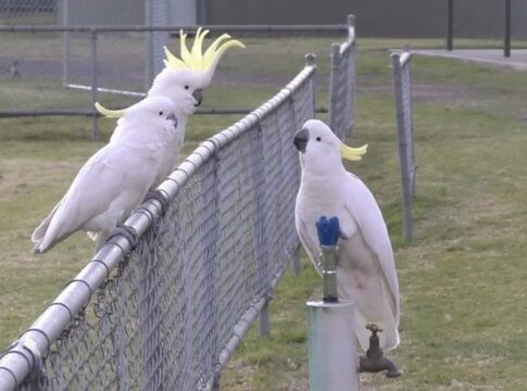 オーストラリアのキバタンが飲水台を使い水を飲む行動が観察され、好奇心や学習能力が示された。