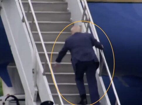 トランプ大統領がエアフォースワンの階段で転倒しそうになる映像が話題に。SNSで急速に拡散中。