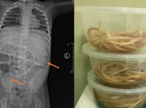 インドネシアの3歳児が回虫感染で腸閉塞を起こし、手術で回虫を除去。衛生環境が原因か。