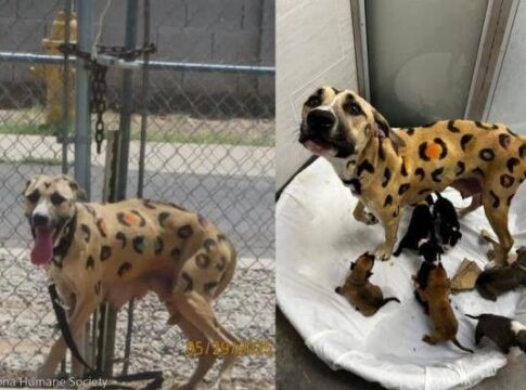 「ヒョウ柄に塗られ捨てられた母犬」灼熱の道路で発見、9匹の子犬とともに救われた命
