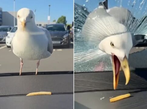 「カモメをからかうな!」カモメが車のガラスを割ってポテトをパクリ!?驚きの映像が話題に!