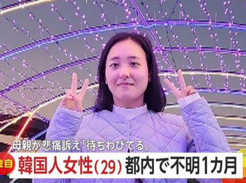 日本旅行中の韓国人女性が行方不明。母親への連絡後、治療費を送金し消息を絶った。