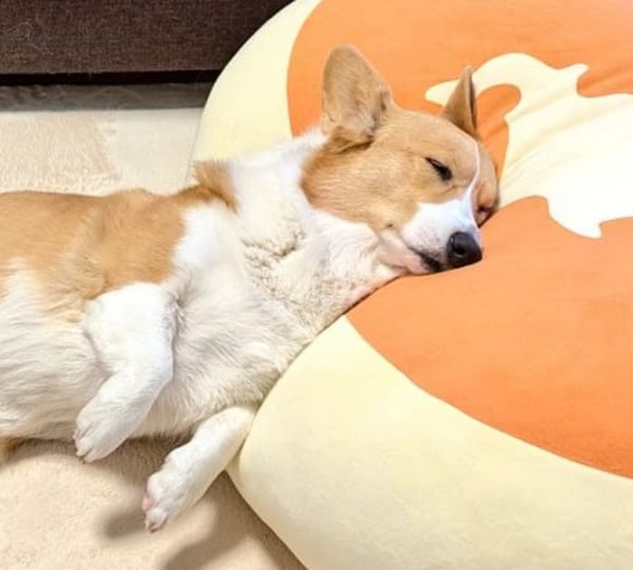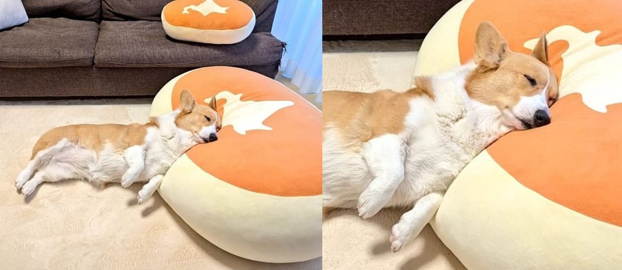 【癒やしの寝顔】巨大クッションに頭を預けるコーギー、ネットで「人間みたい」