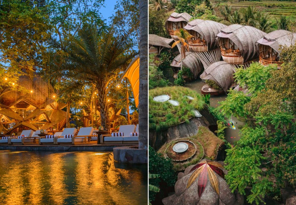 【引用:リゾートの公式サイト】一方、豪華さをコンセプトとするこのリゾートでは、湖上に浮かぶ水上家屋風のヴィラ、ジャングルの中での居心地の良さを強調した昆虫の繭型ヴィラ、映画『アバター』を彷彿とさせるツリーハウス風のヴィラなど、各客室ごとにユニークなデザインを採用しており、多数の受賞歴を誇る。1泊の料金は約6万円台とされる。