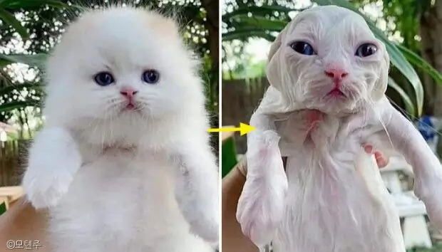 【引用:SNS】丸くてふわふわ、愛らしい子猫が、以外な風呂上がりの姿を披露し、ネットユーザーの笑いを誘っている。台湾の『聯合報』は、風呂上がり後に全く別の猫になったかのような子猫を紹介した。台湾在住の飼い主モー・ティエンジュウさんは、2020年1月に一緒に暮らす子猫を風呂に入れた。タンポポの綿毛のようで、綿菓子のようにふわふわの白い毛が自慢の子猫は、まん丸い顔がチャームポイントだった。
