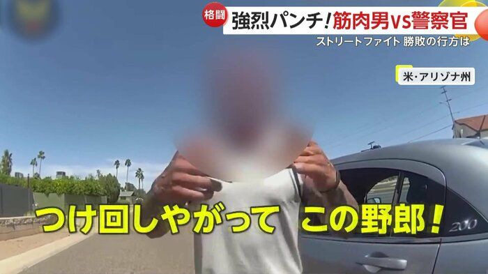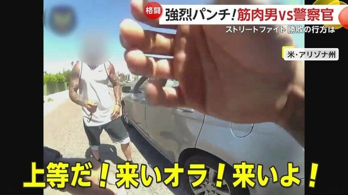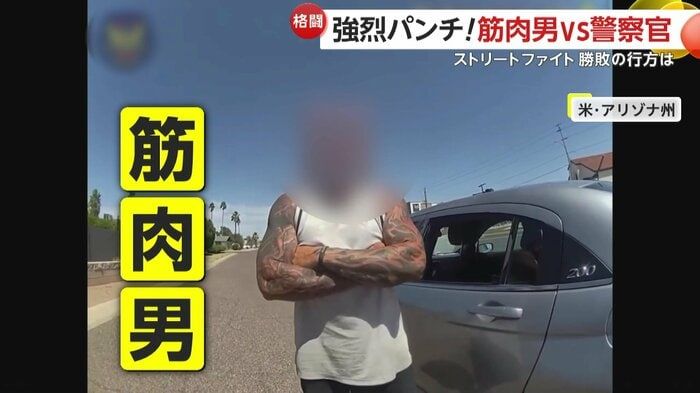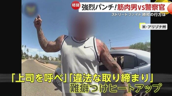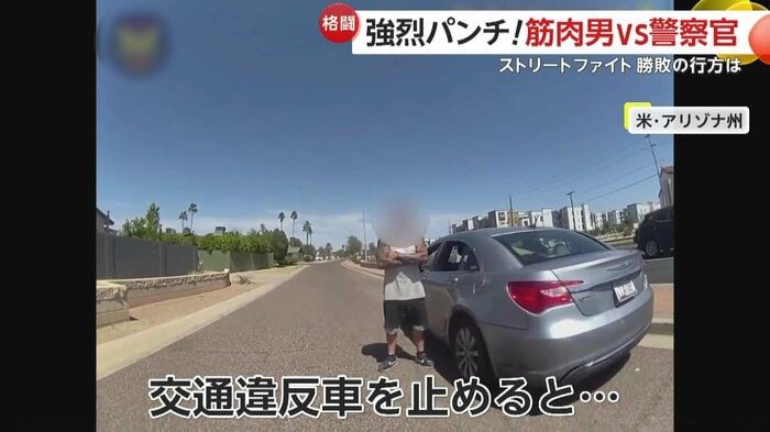 【引用:FNNプライムオンライン】今年5月、アメリカ・アリゾナ州で交通違反の取り締まり中、警察官が筋骨隆々の男と乱闘になる事態が発生した。