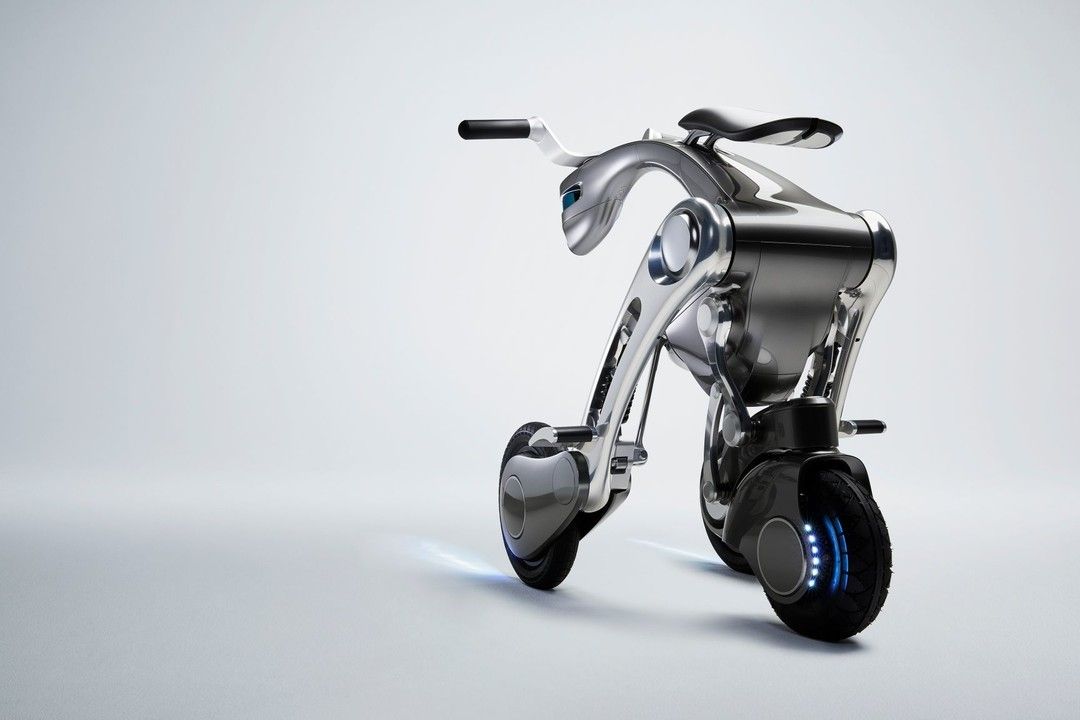 【引用:fuRo】最も分かりやすいのは、白い外装パネルを装着したモペッド/電動バイク型だ。このスタイルには二つの走行モードが用意されている。また、外装を外してフレームむき出しの状態で乗ることもでき、こちらも二つのライディングポジションが選べる。