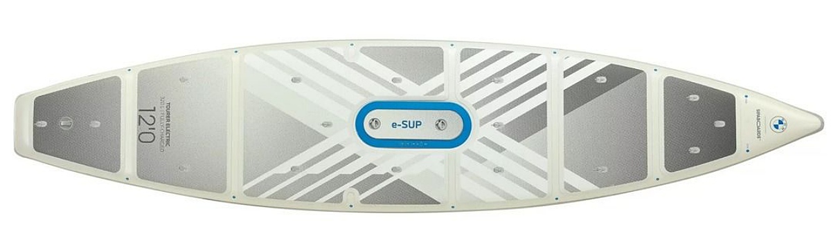 【引用:BMW】このボードには300Wのモーターが組み込まれ、最大3時間30分の航行が可能。スタンドアップパドルボード(SUP)としては異例の電動アシストを備え、向かい風や潮流の中でも安定した走行を実現する。