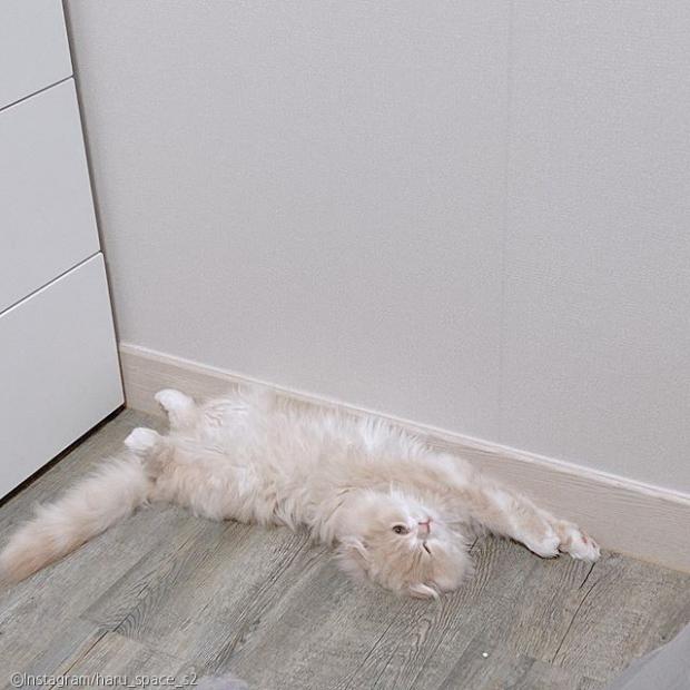 【引用:Instagram@haru_space_s2】その後、スギョンさんは二匹の姿を捉えた動画を「足が短くて一方的にやられる猫」というタイトルでSNSに投稿し、3,400件以上の「いいね」を集めて話題を呼んだ。