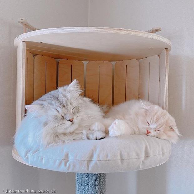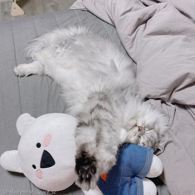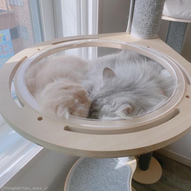 【引用:Instagram@haru_space_s2】ハルが弟を先に攻撃することは決してないが、必ずウジュが先に挑み、兄から猫パンチで反撃されるという。「時々喧嘩をしているように見えるが、喧嘩をしても寝るときは必ず透明なハンモックの中で互いに寄り添って眠るほど仲良し」と二匹を紹介したスギョンさん。