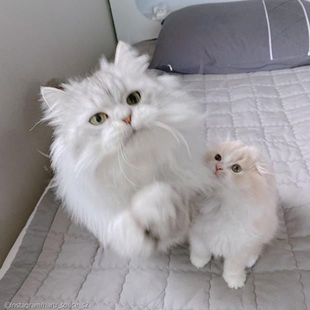 【引用:Instagram@haru_space_s2】生後1年7ヶ月のハルと生後4ヶ月のウジュは、どちらも甘えん坊で愛嬌たっぷりの猫たちだ。昼間は抱き合って寝るほど仲が良いが、夜になると動画のように言い争いながら遊んでいるという。もちろん、いつも弟のウジュが先に仕掛けるそうだ。