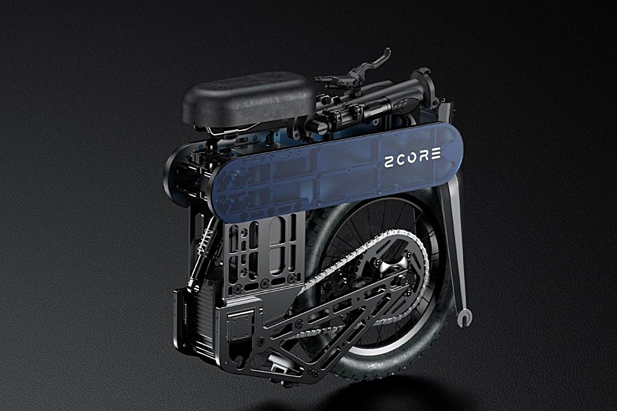 【引用:Zcore Vala Box】重量はわずか18.6kg。一般的な電動自転車よりも軽く、溶接を省いたモジュール式フレームと軽量素材の組み合わせが、その軽さを実現している。組み立て構造により修理やメンテナンスも容易で、前部は電動自転車に似た構造を採用。ハンドルやステアリングコラムを折りたたみ、フォークと前輪を取り外すことで完全に収納できる。駆動系は中央モーターとチェーン方式を組み合わせ、スイングアームが前方に折りたたまれる設計だ。欧州で公開された「Colibri M22」にも通じる構造を持つ。