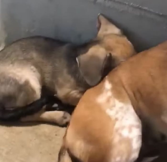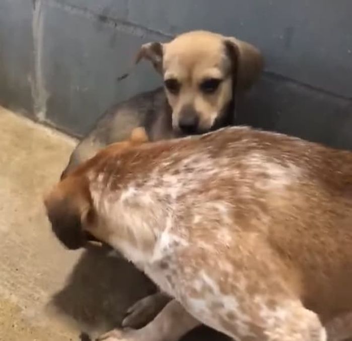 【引用:Dava Hammack】彼らは間もなく安楽死される予定だったため、死への恐怖と見知らぬ保護施設の環境に全身を震わせていた。特に、子犬はあまりの恐怖に為す術を知らなかった。その時、母犬が自らできる最も崇高な行動を示した。母犬は、自身も恐怖に震えながらも、子犬を自分の大きく温かい体の後ろに隠したのだ。