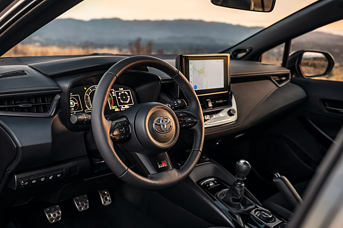 【引用:トヨタ】エクステリアは、機能美と迫力を融合させたデザインへと進化。ワイドフェンダーが生み出す塊感とブラックアクセントが、GRの持つ「走るための造形」を際立たせている。マットブラック仕上げの18インチアルミホイールとミシュラン・パイロットスポーツ4タイヤが高いグリップ力を発揮し、リアにはトリプルエキゾーストと大型ディフューザーを配置。視覚的にも「GRらしさ」を強調する仕上がりとなった。