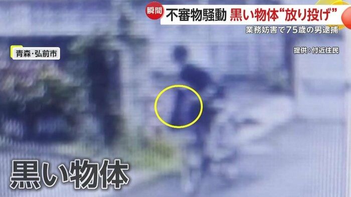 【引用:FNN】青森県弘前市で、不審物が相次いで見つかった事件で75歳の男が逮捕された。現場周辺の防犯カメラには、自転車に乗った男が黒い物体を置いて立ち去る様子が映っており、警察はこの映像をもとに男を特定した。不審物は市内で少なくとも6件確認されており、いずれも爆発などの危険性はなかったという。