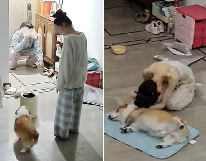 【引用:YouTube@おいしいかき氷】やがて「カチリ」と鍵の音が響き、ドアが開いた。その瞬間、コーギーの目が光を帯びた。そこに立っていたのは、待ち続けた男性の飼い主であった。聞き慣れた足音を耳にしたコーギーは、ほっとしたように目を細めたという。残されたわずかな力を振り絞り、よろめきながらも飼い主のもとへ歩み寄る。そして、その手に最後の温もりを伝えるように頭を擦り寄せた。飼い主の優しい手に包まれながら、コーギーは静かに身を横たえた。まるで「もう安心して眠れる」と言うかのようであった。