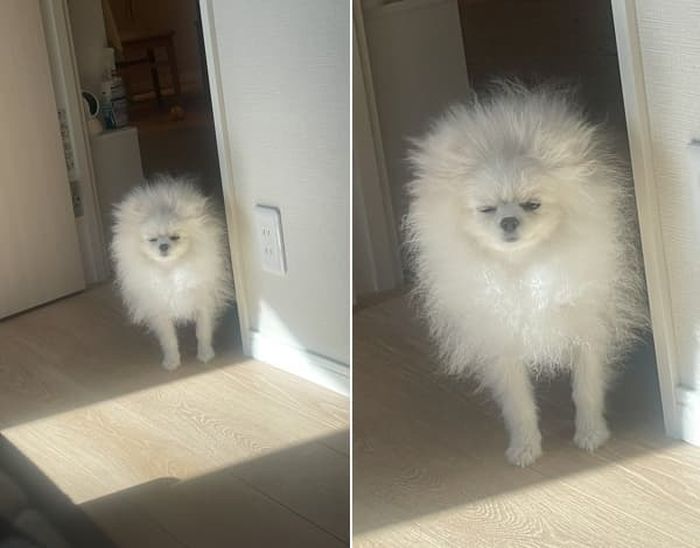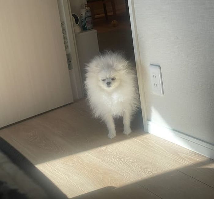 【引用:x@chomupomexx】この話の主人公は毎朝飼い主を起こす役割を担っていたポメラニアンである。ある朝、飼い主の部屋の前に到着した姿は、普段と少し異なっていた。朝の日差しが眩しかったのか、眠気が残っていたのか、目はうまく開かず、細目になっていた。