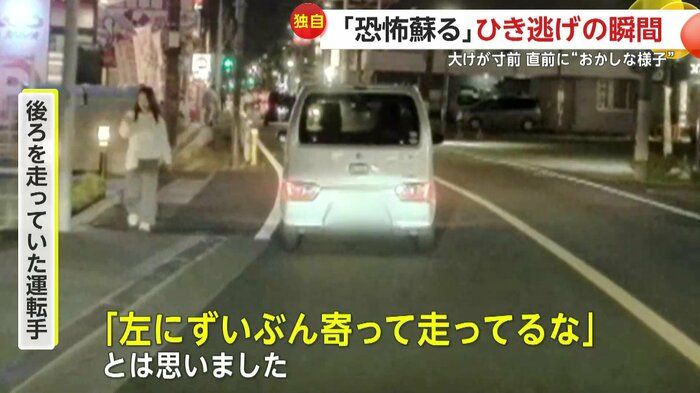 【引用:FNN】確かに、事故の約10秒前、ひき逃げ車はセンターライン付近を走行していた。