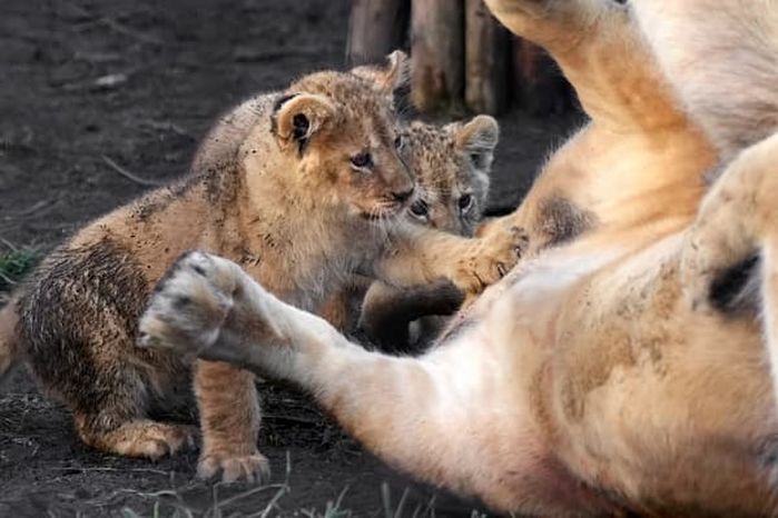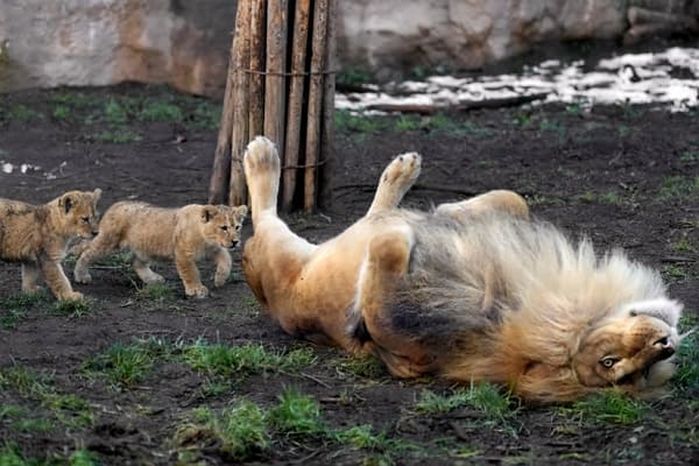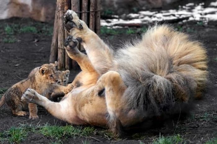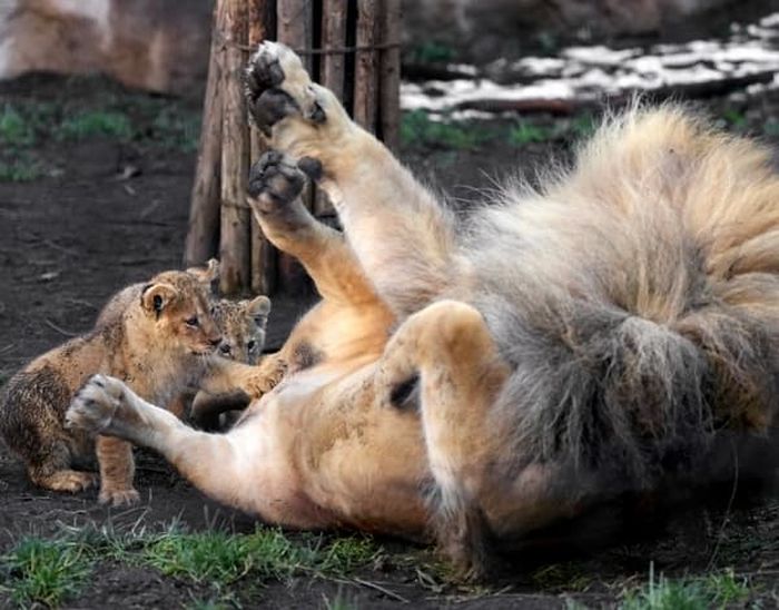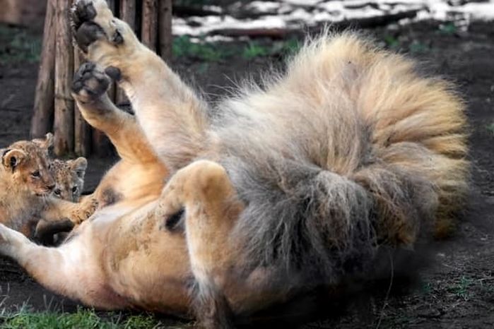 「娘よ、そこはダメだ!」威厳ある父ライオン、まさかの急所攻撃に“体が弓なり”