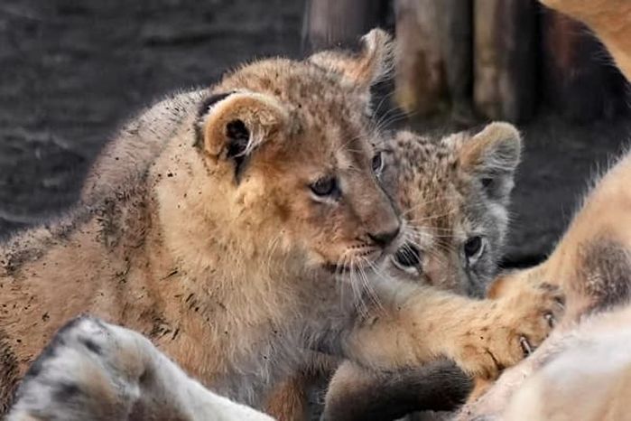 【引用:X@rikunow】そこへ、好奇心いっぱいの二匹の娘ライオンが駆け寄ってきた。「お父さん、遊ぼう!」と言わんばかりに跳ね回る娘たち。オリトは満足そうに尻尾を振りながら、優しく相手をしていた――そのときだった。一匹の仔ライオンが、無邪気な表情のまま前足を軽く突き出した。だがその一撃は、見事にお父さんの急所を直撃。その瞬間、オリトの表情が一変した。体を弓なりに反らし、驚きと苦痛が入り混じった顔で飛び起きたのだ。