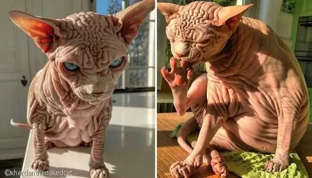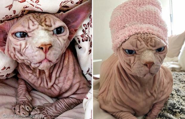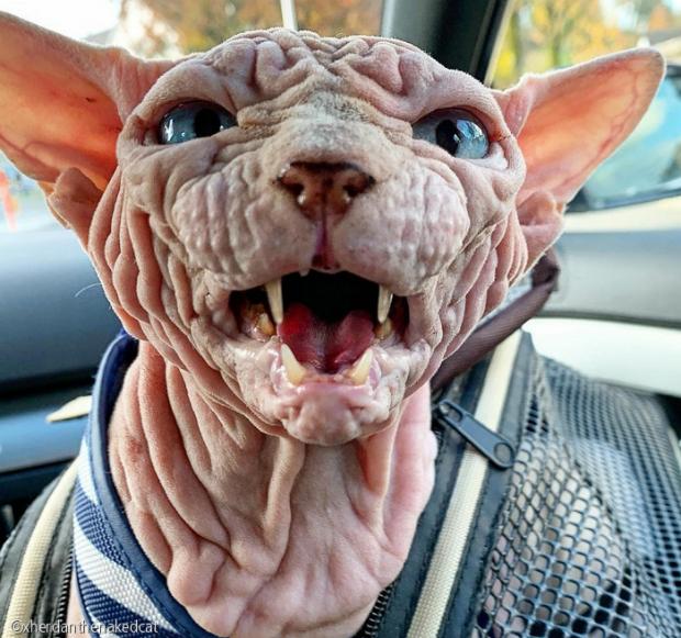 【引用:instagram@xherdanthenakedcat】これを見たネットユーザーたちは、「いつも怒っている隣のオジサンみたい」、「イモムシにそっくり」、「脳みそを見ているようだ」といった反応を見せた。サンドラは「シェルダンは遊び好きで、おしゃべりな甘えん坊の猫なんです」と語り、「みんな最初はシェルダンを怖がるけど、少し見ているうちに必ず恋に落ちてしまう」と話した。