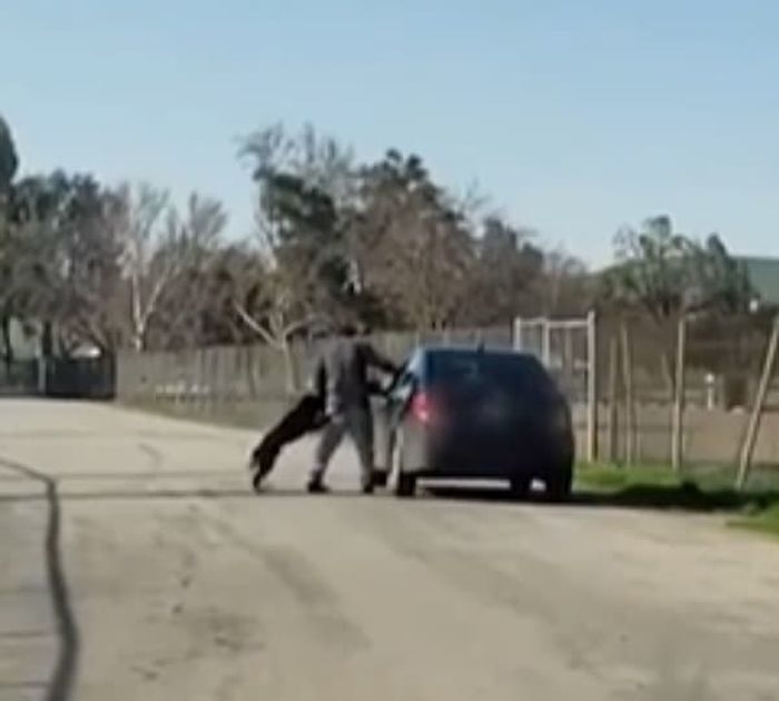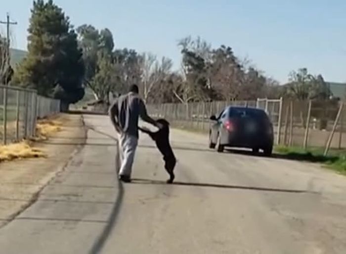 【引用:YouTube@ViralHog】米国カリフォルニア州・ベーカーズフィールド近郊の道路で、飼い犬を置いて行こうとする飼い主の映像が拡散し、動物虐待だとして非難の声が高まっている。映像には、一匹の犬と飼い主と思われる男性が揉み合っている様子が映っていた。