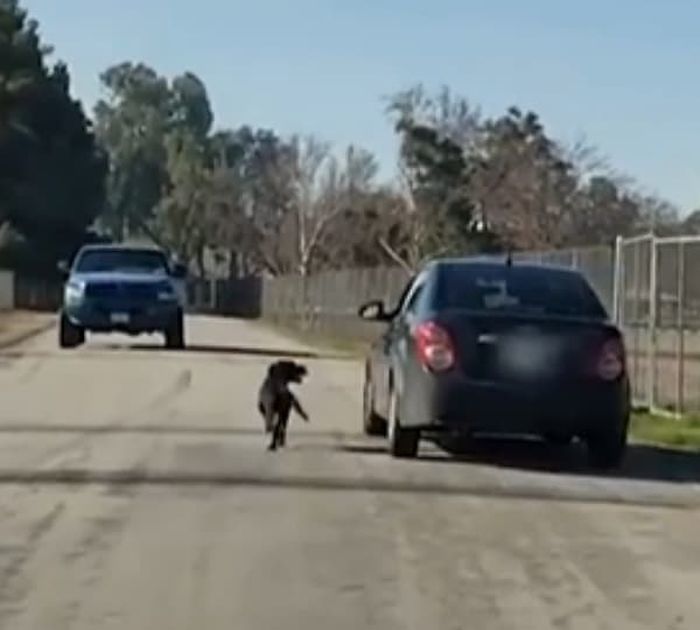 【引用:YouTube@ViralHog】しかし飼い主の男性は犬を振りほどき、急いで車に乗り込んだ。犬は必死に車を追いかけたが、やがて速度に追いつけず立ち止まり、遠ざかる車をただ見送るしかなかった。一緒に暮らしてきたはずの家族である犬を路上に残したまま立ち去る行為に、多くの人が強い憤りを示している。