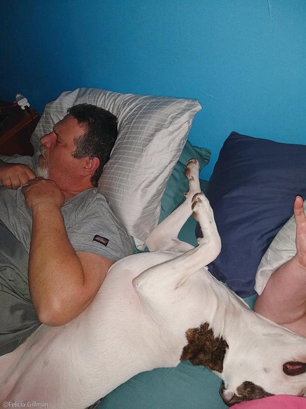 【引用:香港・エポックタイムズ】チャーリーの落ち着かない様子は、フェリシアさんが安楽椅子で眠っていた56歳の夫ダグさんを見つけるまで続いた。フェリシアさんが夫を起こそうとしたが応答はなく、その時になってはじめて呼吸をしていないことに気づいたという。フェリシアさんは「ダグを揺すり、叩いたりもしましたが全く反応がなかった。目も開けませんでした」と当時を振り返る。