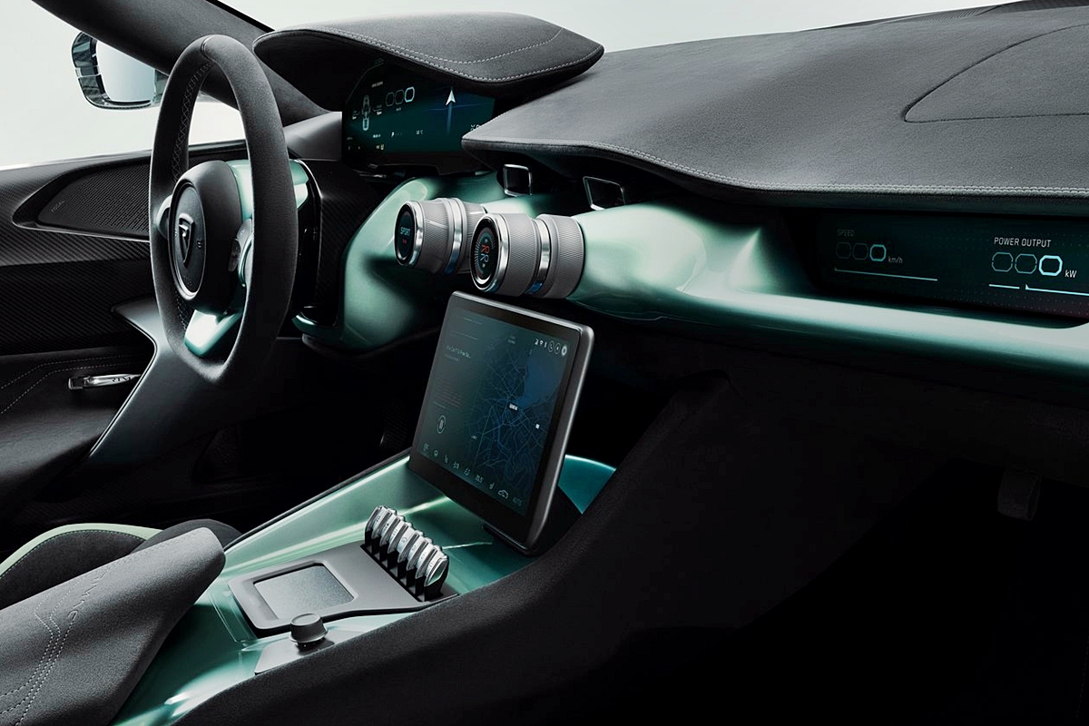 【引用:リマック】静止状態から100km/hまでわずか1.81秒。ネヴェーラの心臓部には、1,914馬力と最大トルク2,360Nmを発揮する4つの独立電気モーターが搭載されている。このシステムがもたらすのは、単なる加速ではなく、四輪の駆動力を緻密に制御する究極の安定感だ。コーナリングでは即応性の高いトルクベクタリングが発揮され、ドライバーは電気モーター特有のレスポンスを全身で感じ取ることができる。