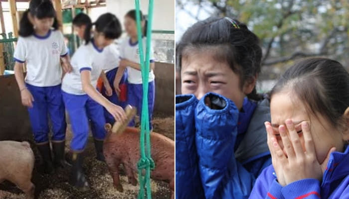 【引用:シナ】多くの子どもたちは、大人の勧めを断ることができず、目をぎゅっと閉じ、涙を流しながらも、少しずつその豚肉を口にするしかなかった。学校側はこれを「命と食料の大切さ」を学ぶ体験学習の一環であると説明した。この体験学習を企画した学校の校長は、後に次のように語った。「私たちは、子どもたちに弱肉強食、つまり、弱い動物は強い動物に食べられてしまうという現実を、直接体験を通して教えたかったのです。」