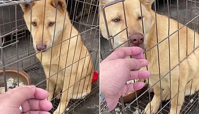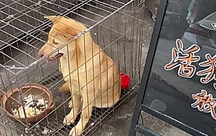 【引用:テンセント】店主は「うちの店の肉は新鮮で健康にいい」と客に公告するため、子犬を檻に入れて店先に展示していたという。檻のすぐ横には、犬肉の価格を表示する看板まで置かれていた。檻の中の子犬は、自分がどのような状況に置かれているのかを理解していなかった。むしろ外を歩く人々を見ては嬉しそうにしっぽを振ったり、無邪気な笑顔を見せたりしていたという。